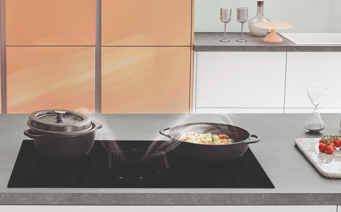 Die berbel Downline Performance 2026 kombiniert ein leistungsstarkes Induktions-Kochfeld mit einem effektiven Dunstabzug in minimalistischem Design. Anstatt Kochdünste nach oben aufsteigen zu lassen, wird der Kochwrasen direkt am Kochfeld mithilfe des filterfreien berbel Prinzips abgesaugt. Einer klaren Sicht beim Kochen und ungestörten Kommunikation mit Familie und Freunden steht so nichts im Wege. Die intuitiven Bedienfunktionen machen das Zubereiten von Gerichten zu einem Kocherlebnis. Auch die Reinigung des Kochfeldes ist spielend einfach: Alle Teile der Abscheideeinheit können problemlos entnommen und in der Spülmaschine gereinigt werden. Dank der schlanken Bauweise bleibt zudem viel Stauraum unter dem Kochfeld erhalten. Die Glas-Kochfläche ist wahlweise mit schwarz glänzendem oder mattschwarzem SCHOTT CERAN® Oberflächen-Finish erhältlich – passend zum Stil der Küche.